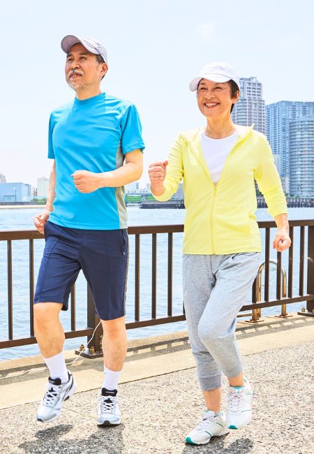 La marche fractionnée (Interval Walking Training, IWT) mérite une attention particulière car elle combine harmonieusement les avantages de l’exercice d’endurance et de l’entraînement fractionné de haute intensitéN7. Elle reprend le principe d’une alternance de d’efforts intensifs (mais modérés) et de phases de récupération, sous une forme programmée : 5 répétitions d’un cycle qui comprend 3 minutes de marche lente suivi de 3 minutes de marche rapide (à la limite de l’essoufflement) : la méthode 3–3. Ce qui revient à trente minutes par séance, environ 4 jours par semaine. Pendant la marche lente, des exercices d’étirement et d’assouplissement sont pratiqués. La vidéo publiée par le NHK est tout à fait explicite au niveau des images.