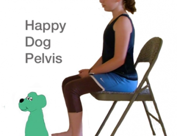 La position idéale du bassin en posture assise est illustrée simplement par les images du « chien triste » et du « chien heureux » (source Kathleen Porter, 2006N1) :